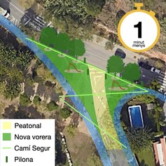Descripció: Reduir l'espai de circulació als encreuaments, fer des del pas de vianants fins a Camí Dalt d'Alella peatonal. El pas actual obliga donar volta amb un sobrecost d'un minut, però molts creuen en línia recta malgrat el perill.