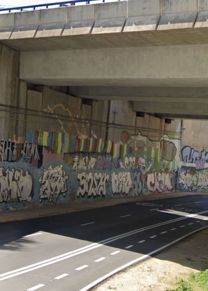 Instal·lació de peces d'escalada sota el pont de la carretera B-20(Riera carrer Santiago Rusiñol). Fer circuits bàsics d'iniciació a l'escalada per a totes les edats.
